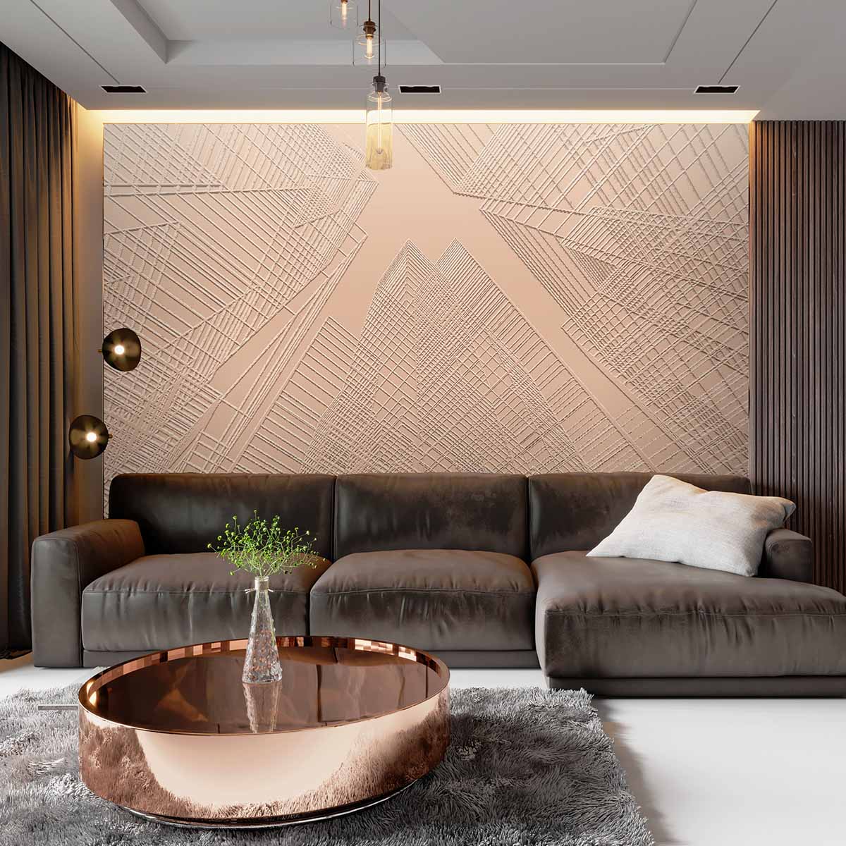 3D -Tapeten sind eine großartige Lösung für die Inneneinrichtung, wenn einfach gestrichene Wände etwas zu schlicht sind. Es kann jede gewünschte Struktur gedruckt, an der Wand verklebt und dann in jedem gewünschten Farbton gestrichen werden.