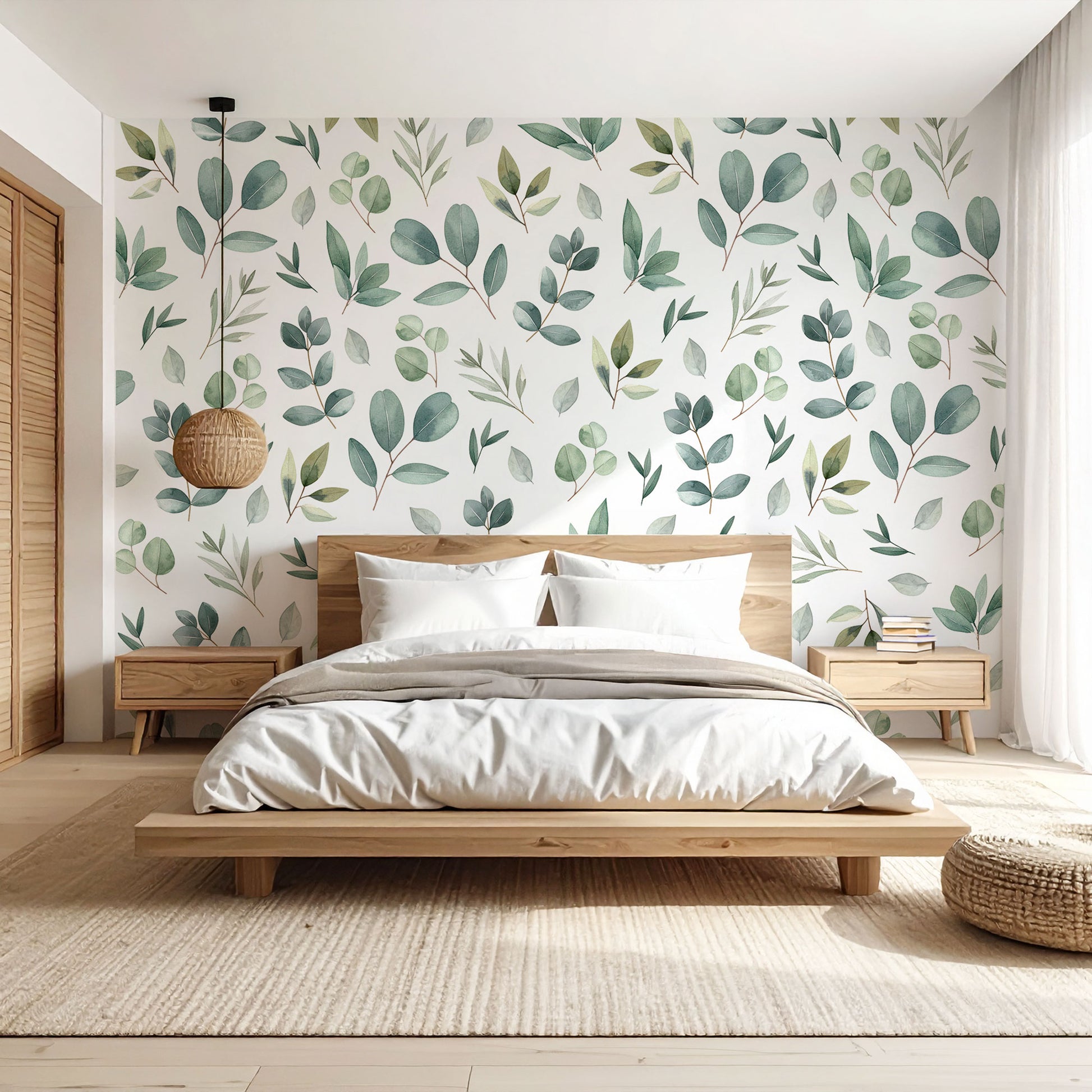 Diese Tapete mit zarten, in Aquarell gemalten grünen Blättern bringt Leichtigkeit und Natürlichkeit in jeden Raum. Die sanften Grüntöne wirken beruhigend und schaffen eine harmonische Atmosphäre – ideal für Wohnzimmer, Schlafzimmer oder kreative Arbeitsbereiche. Das zeitlose Design verbindet moderne Eleganz mit einem Hauch von Natur und macht Ihre Wände zu einem stilvollen Blickfang.