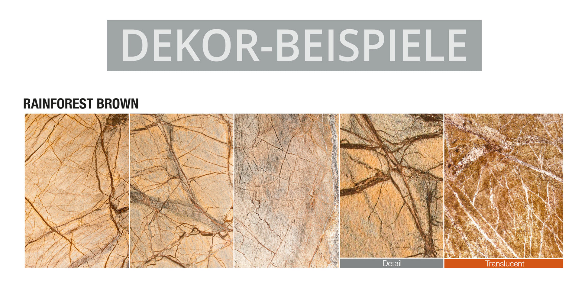 Rainforest Brown ist ein Marmordekor mit einer echten Steinoberfläche.