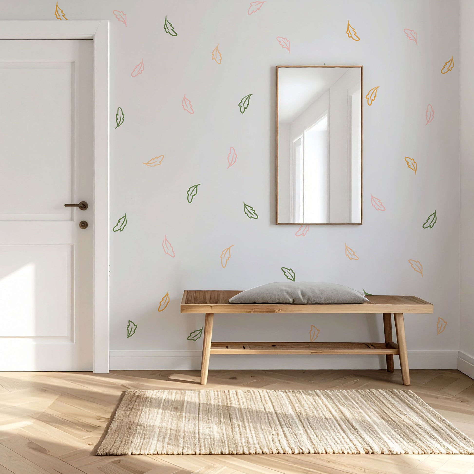 Zarte, linienhafte Illustrationen fallender Blätter verleihen dieser Tapete eine ruhige, moderne Eleganz. Das reduzierte Design bringt Leichtigkeit in jeden Raum und fügt sich mühelos in verschiedene Einrichtungsstile ein.