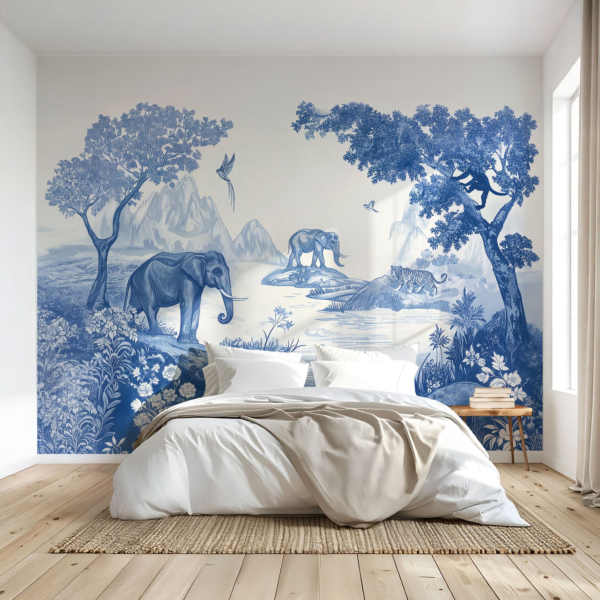 Tapete Toile de Jouy Blau – Klassik trifft Eleganz